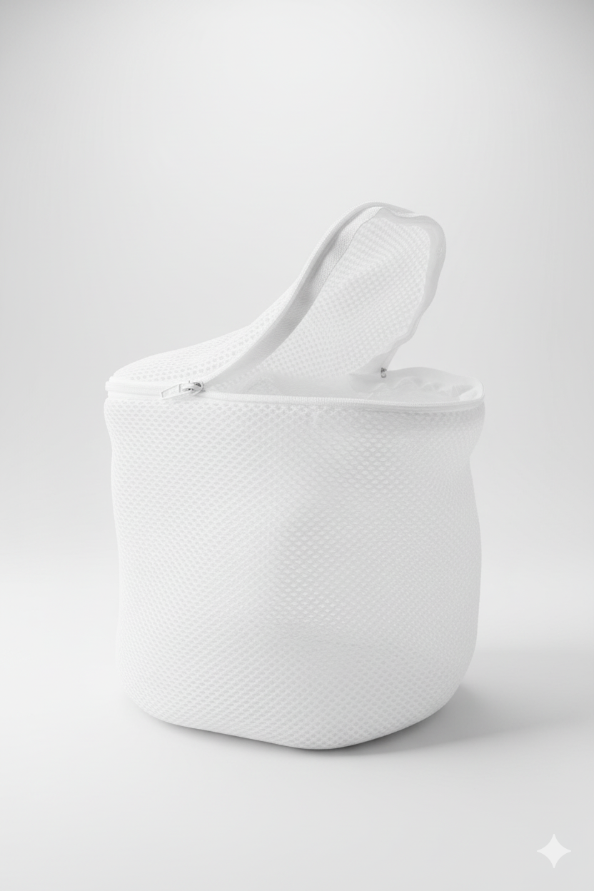 Saculet de protectie pentru spalarea dresurilor, lenjeriei si a rufelor delicate. Saculetul este fabricat din plasa rezistenta care permite circularea apei si a detergentului si asigura o curatare temeinica, protejandu-va in acelasi timp hainele de incurcaturi, agatari sau pierderea formei in masina de spalat. Este prevazut cu fermoar rezistent care ofera o inchidere sigura pe toata perioada ciclului de spalare.