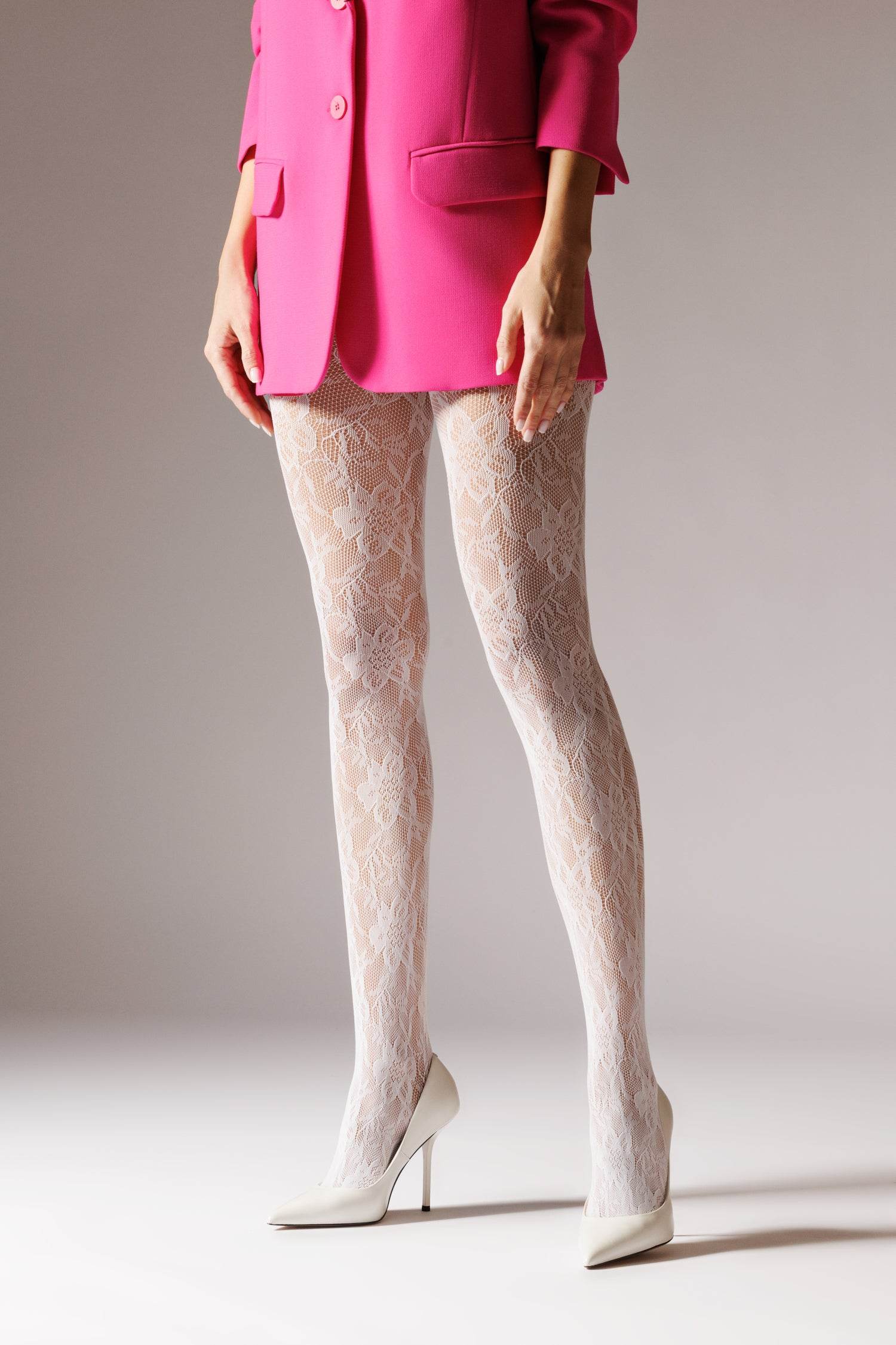 Dresuri din plasa cu efect macrame, model floral. Acest dres complimenteaza picioarele si ofera un aer romantic si senzual. Poate fi purtat cu rochii, fuste sau chiar cu sacouri oversized pentru un efect modern si indraznet.
