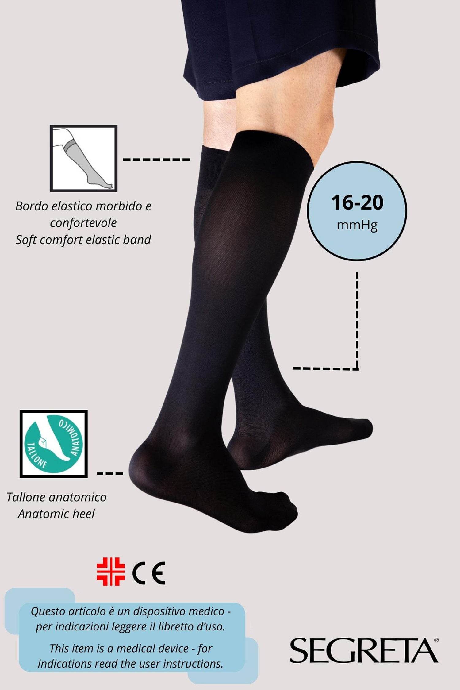 Sosete medicinale pentru barbati, din microfibra, cu compresie medie-mare 16/20 mmHg, 21/27 hPa ideale pentru barbatii activi care doresc o sustinere medie pentru picioare in timpul zilelor lungi de munca sau activitate fizica. Concepute pentru a promova circulatia sangelui, aceste sosete ofera un masaj continuu care reduce oboseala si imbunatateste bunastarea picioarelor. Perfect pentru cei care petrec mult timp in picioare sau in sezut, sportivilor care au nevoie de sprijin suplimentar in timpul antrenamentelor sau competitiilor si celor care sufera de probleme circulatorii, cum ar fi vene varicoase sau picioare umflate.